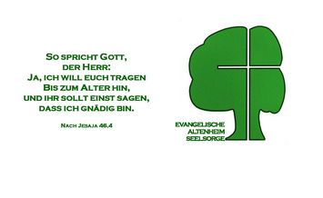 Grußkarte mit Logo und Bibelvers nach Jesaja 46,4